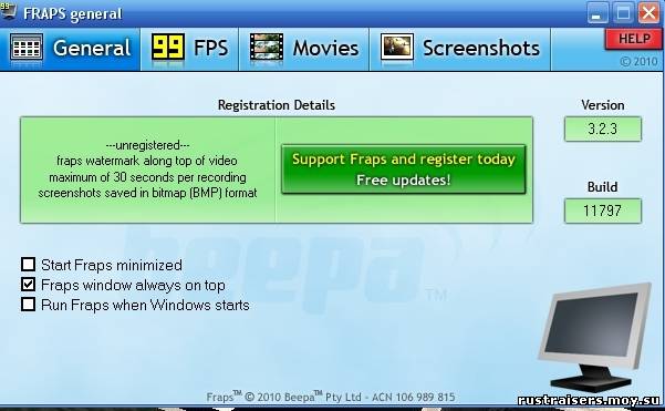 Fraps - предназначенная для подсчета количества FPS (кадров в секунду) в приложениях, работающих в режимах OpenGL и Direct3D. Утилита умеет делать скриншоты и записывать видеоролики с изображением с экрана.